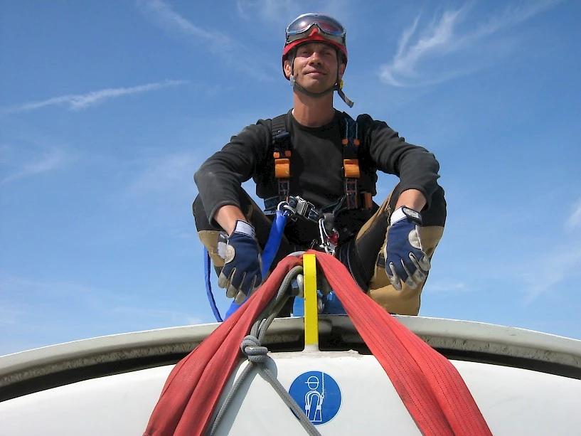 Manchmal scheint ein Schacht zu tief, eine zu reparierende Stelle unerreichbar, Sanierungs- oder Reinigungsarbeiten mit dem Gerüst zu teuer oder unmöglich. Dann klettern wir für Sie hin und übernehmen die auszuführenden Arbeiten.